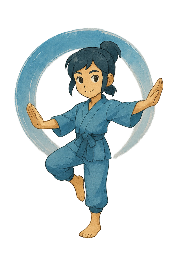 Mizus Geisttier ist der Kranich, ein Symbol für Eleganz, Weisheit und Ausdauer. Wie der Kranich bewegt sich Mizu anmutig und aufmerksam. Sie lehrt die Kinder, dass Gelassenheit kein Zeichen von Schwäche ist – sondern eine große Kraft, die uns hilft, klar zu sehen und weise zu handeln.