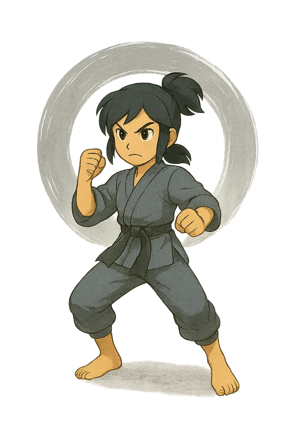 Rin ist frei wie der Wind, voller Leichtigkeit und Neugier. Sie ist das Ensō Kid, das für Freiheit, Kreativität und Beweglichkeit steht. Ihr silberner Ensō-Kreis schimmert wie ein Lichtstrahl im Morgennebel - ein Symbol für Klarheit, Veränderung und die Kraft, immer in Bewegung zu bleiben.